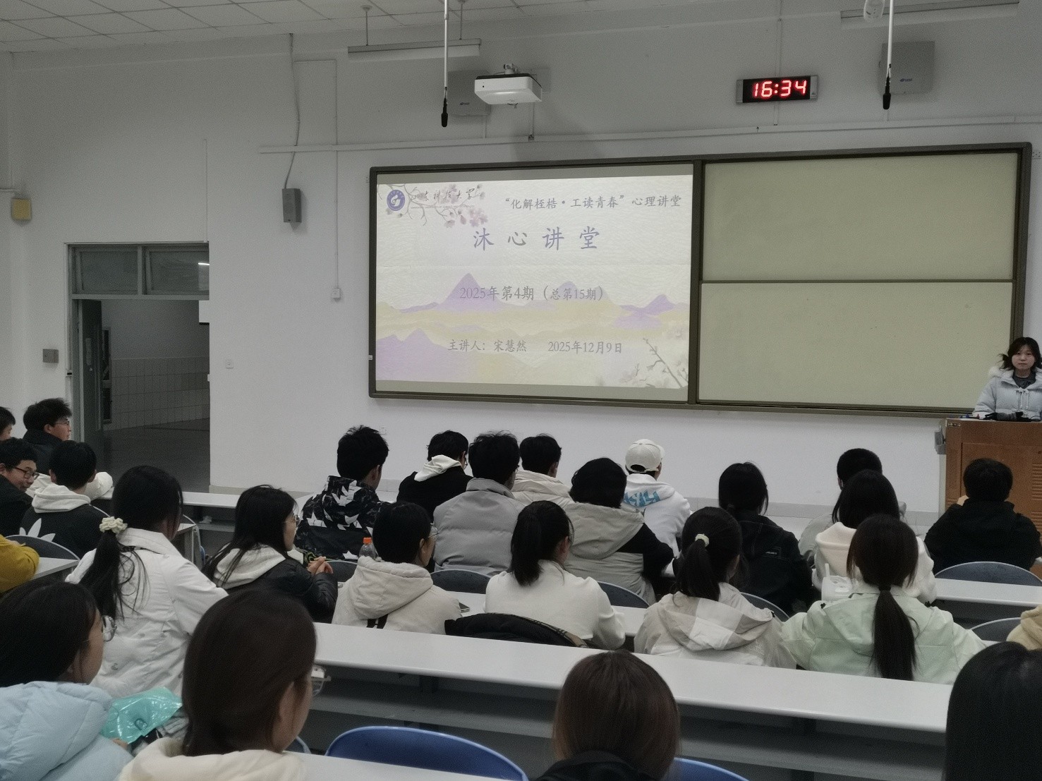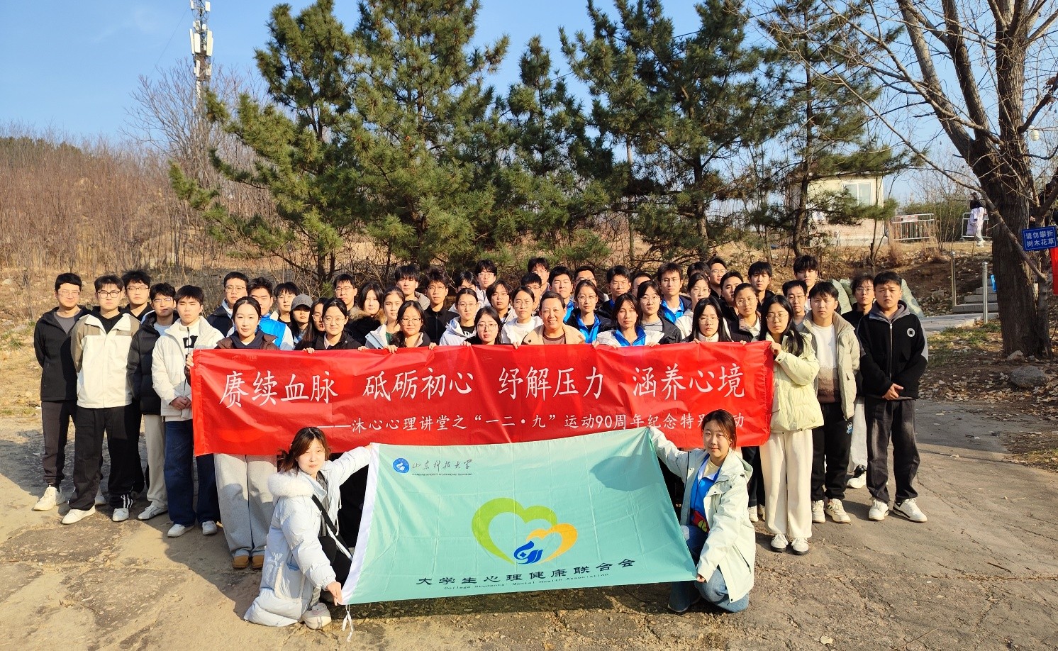 举办第十五期沐心心理讲堂暨“一二・九”运动90周年纪念特别活动。本次活动以“赓续血脉 砥砺初心 纾解压力 涵养心境”为主题,采取“室内讲授+户外实践”的创新形式,引导学生在铭记历史与强健心志的融合体验中实现双向成长。