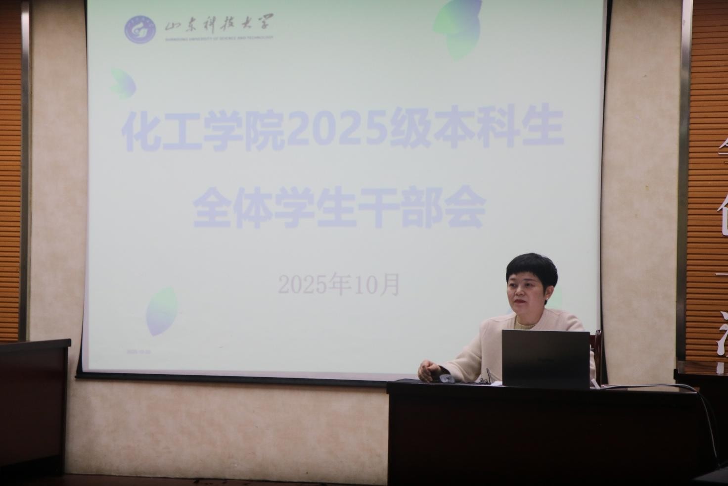 在学院报告厅组织召开2025级本科生全体学生干部会议。学院党委副书记兼副院长田静出席会议并作讲话,新生辅导员李玲玲老师围绕学生干部实务能力开展专题培训。2025级本科生全体学生干部参与本次会议。