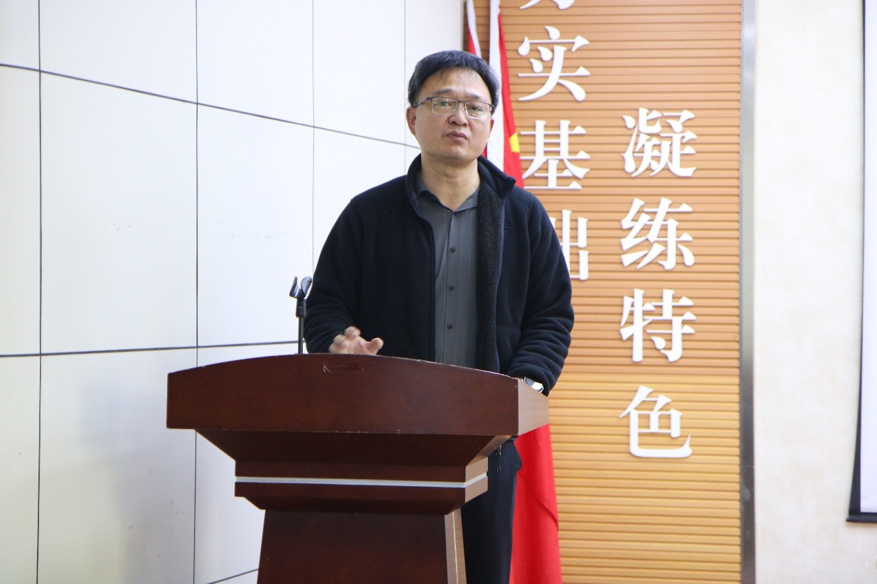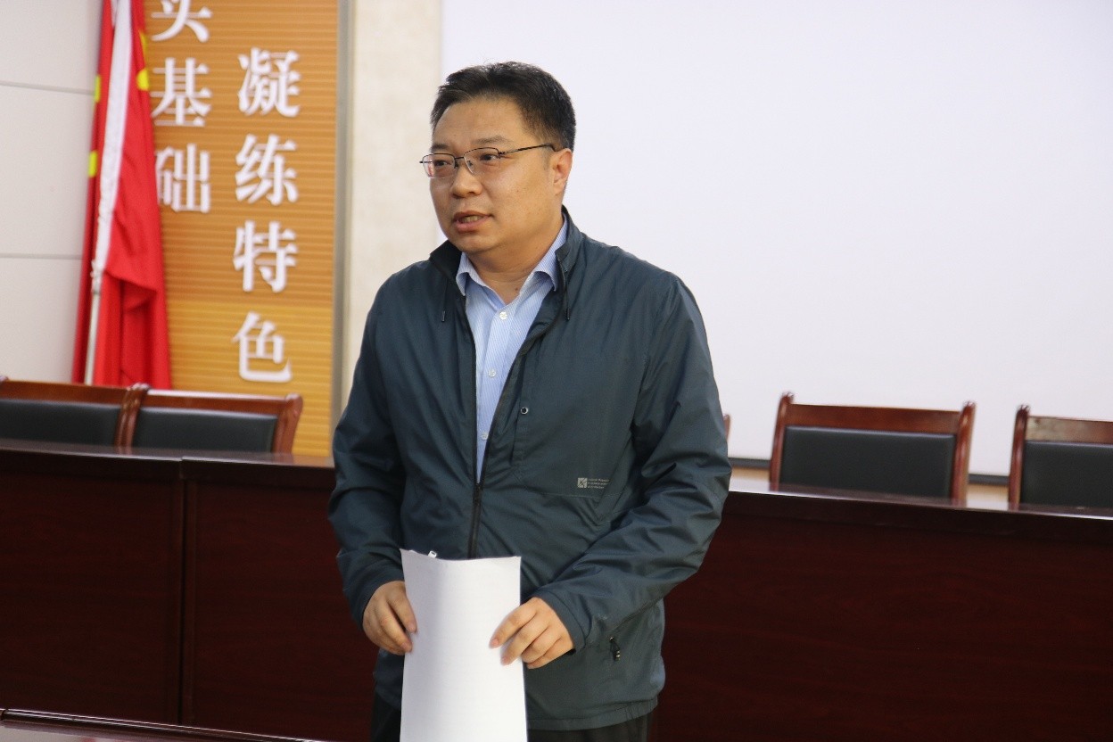在J2-104报告厅召开全体教职工大会。学院党委书记窦存增、院长梁鹏等领导班子成员及全体教职工参会,会议由窦存增主持。